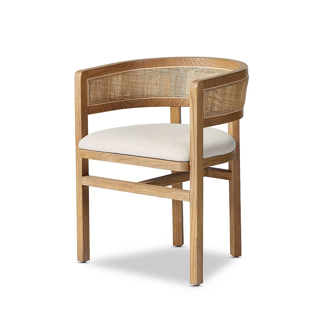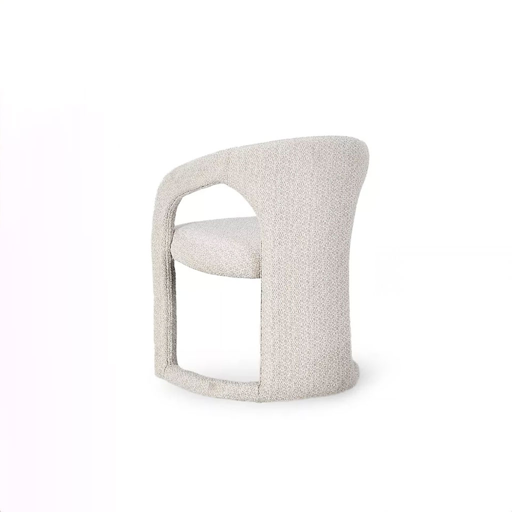 With its long, barrel-back design and fabric upholstery, the Archie Dining Chair adds a modern and luxurious touch to any dining room.