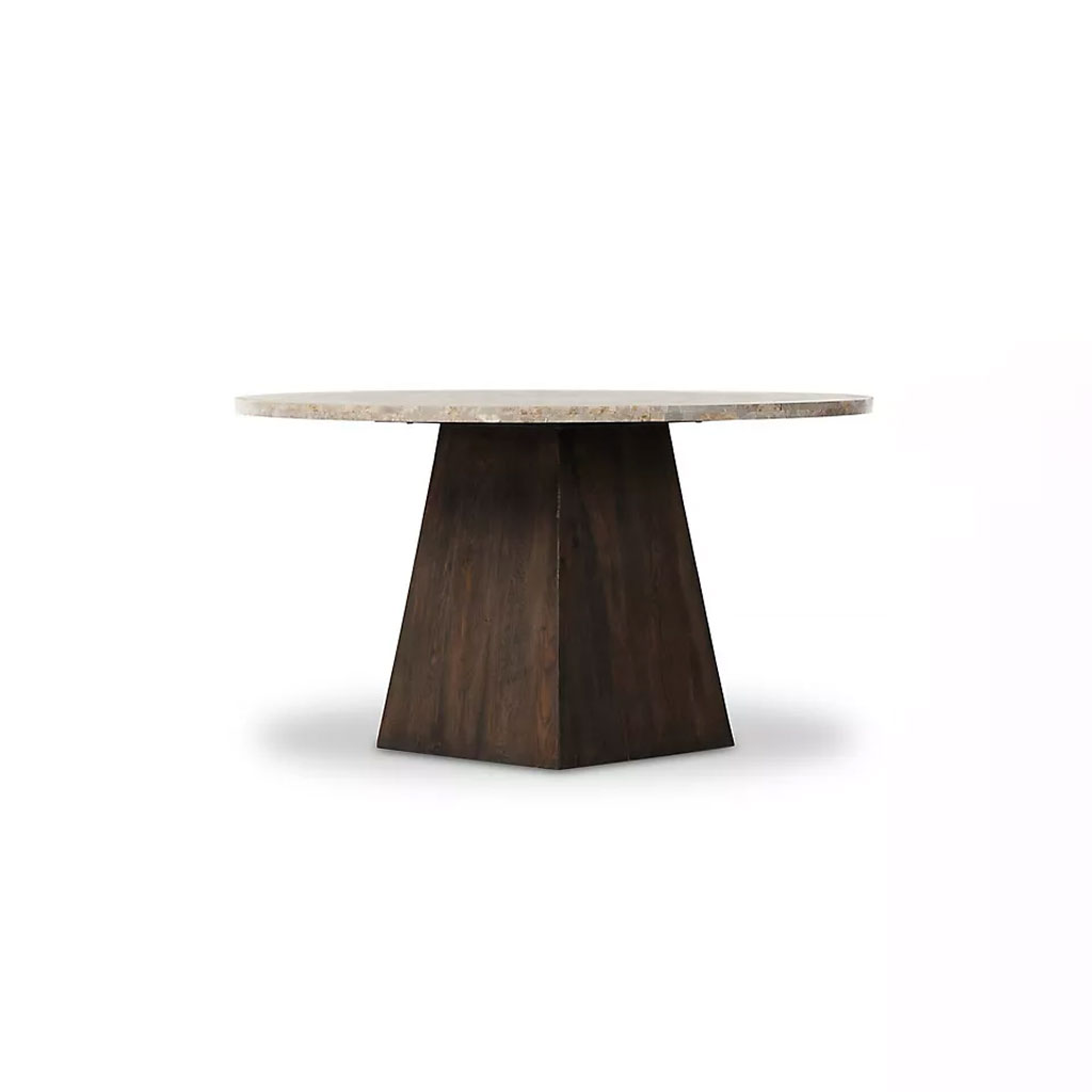 Featuring a geometric solid base and an onyx top, this table gives your dining space a natural, earth-like feel.