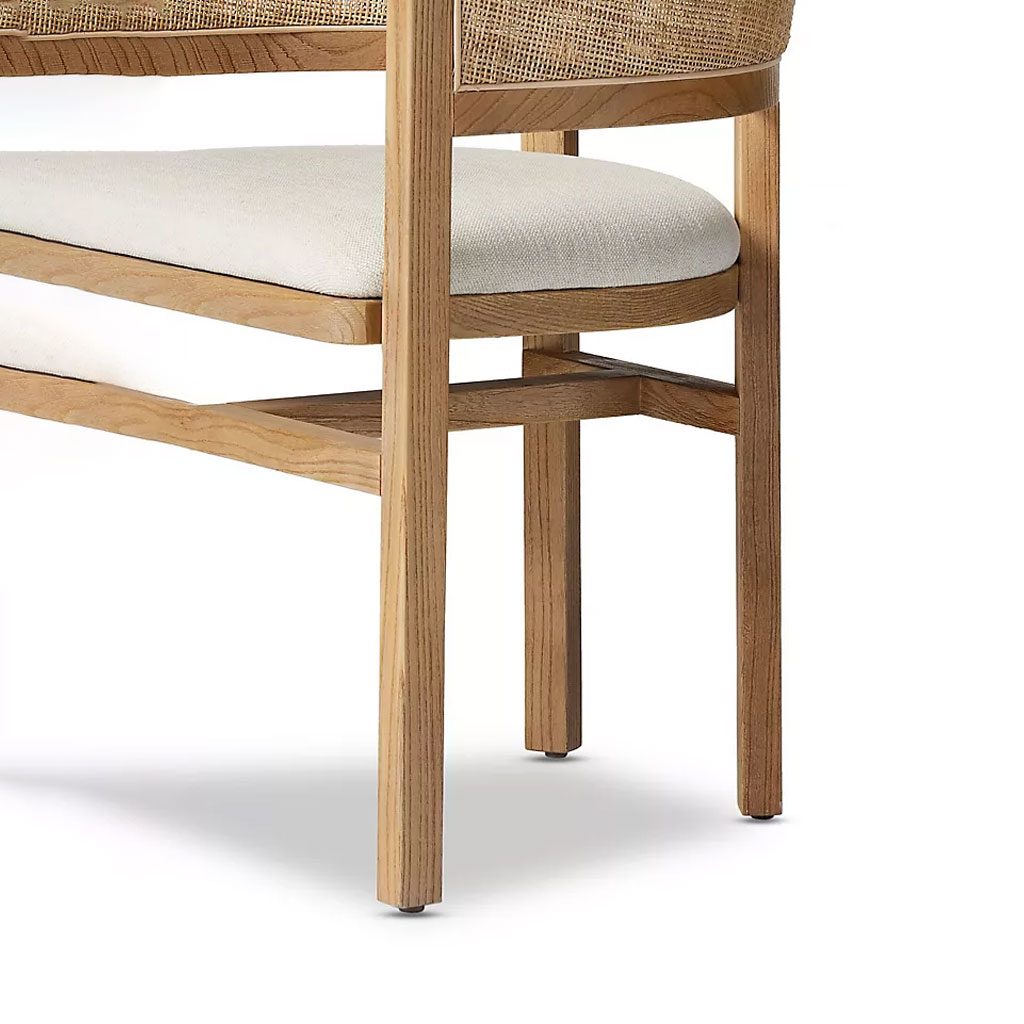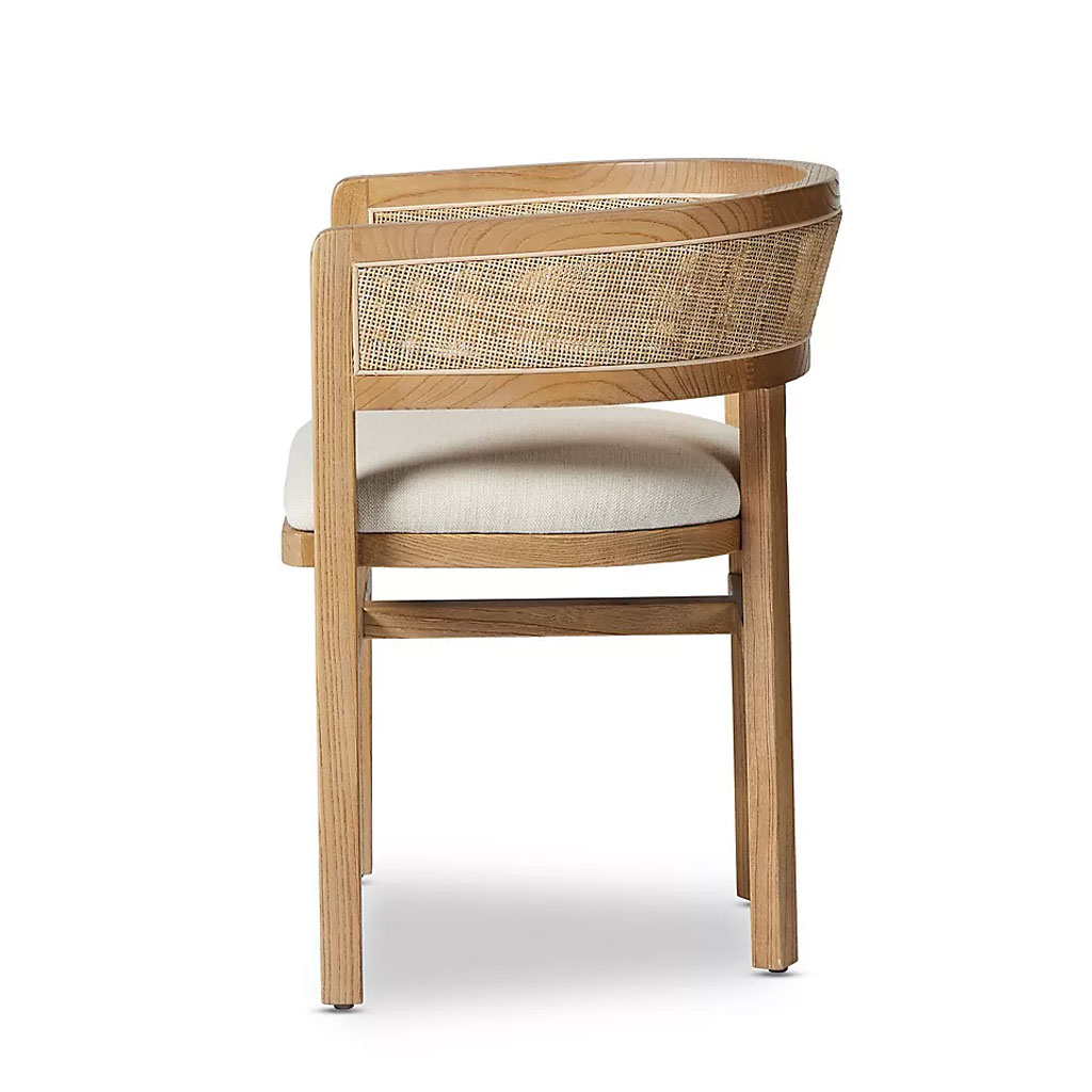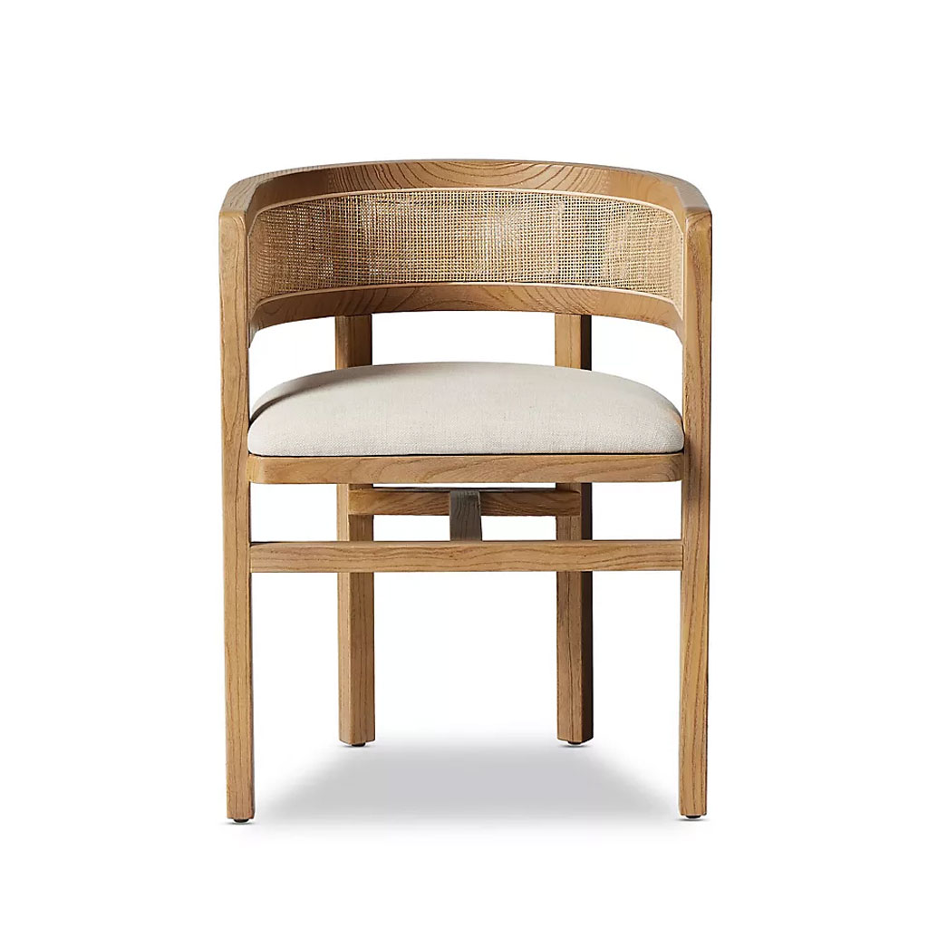 Featuring a barrel back with crosshatch cane paneling, this chair places a structural twist on traditional dining furniture.