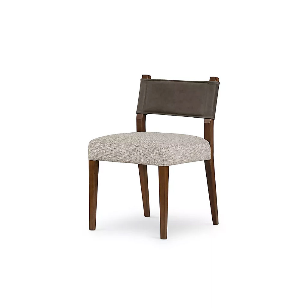 Where mixed materials meet modern flair. A solid parawood frame with a sleek squared silhouette supports a top-grain leather back, while the performance fabric seat is spill-friendly and everyday-use approved.